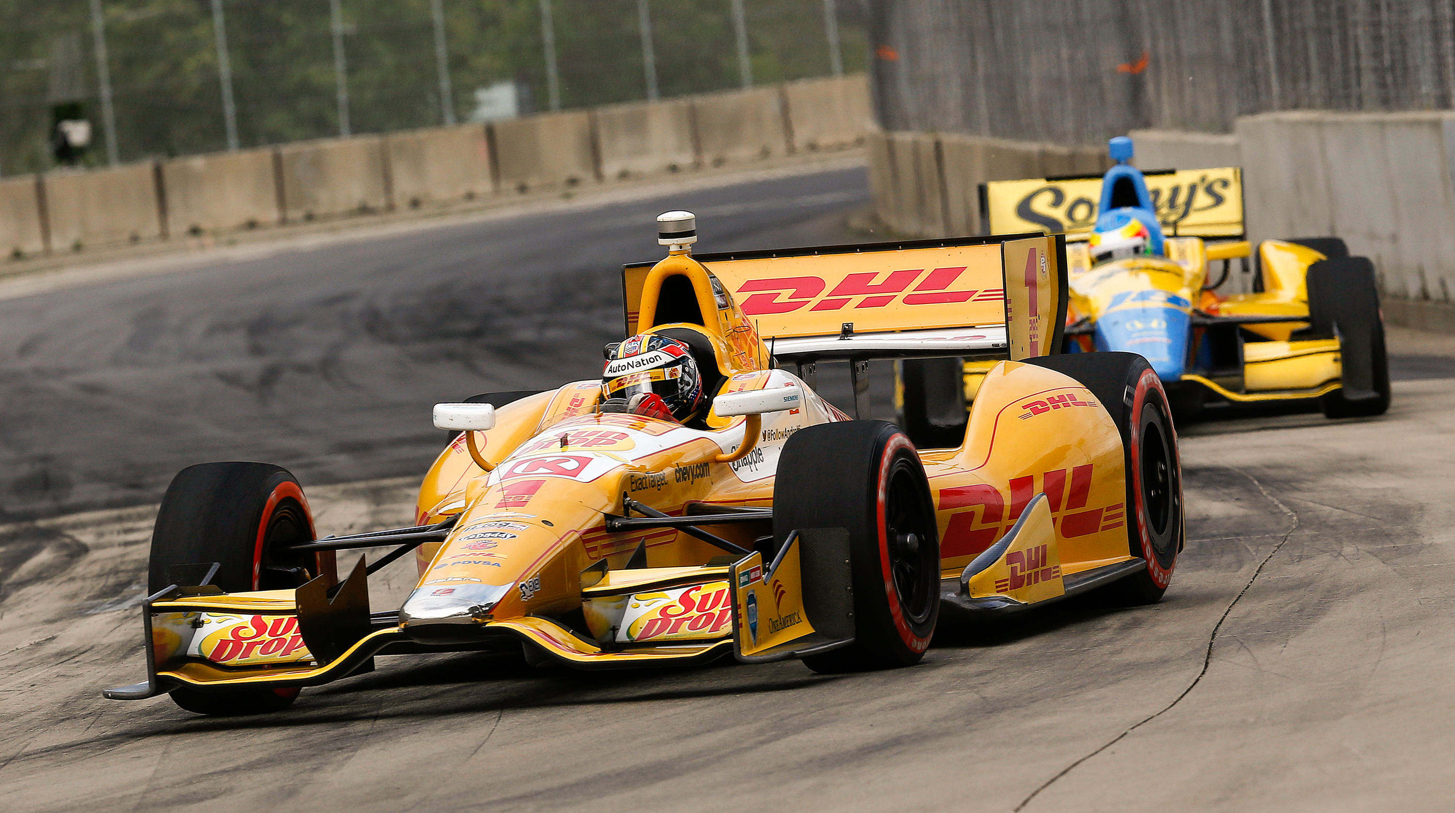 the #1 DHL Andretti Autosport Chevrolet IndyCar leads